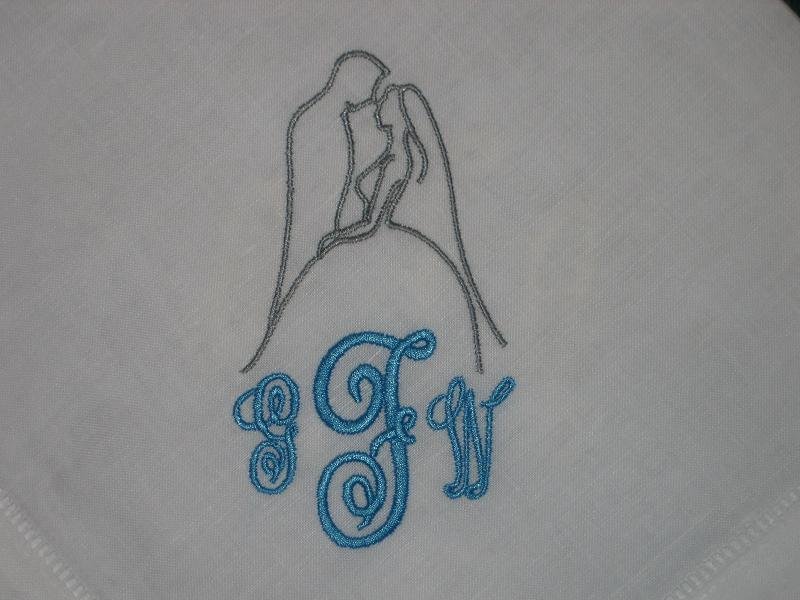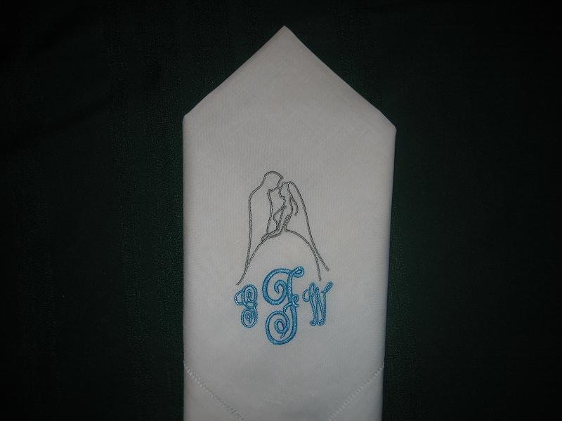 25 Linen Hemstitched Wedding Napkin with bride and groom includes shipping in the US.