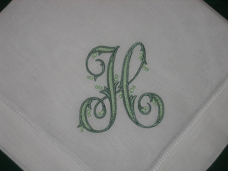 These beautiful white linen napkins are 20in. x 20in. Let me know the letter you need in the note to seller section of the order. I can only fit 1 letter.