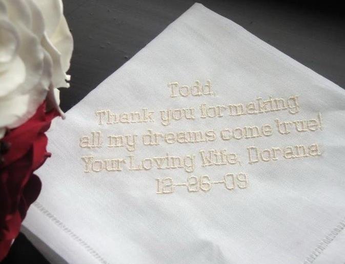 Linen makes the ultimate statement in a gentleman’s wardrobe. This personalized wedding gift measures approx 16.5″ square. Available in White.